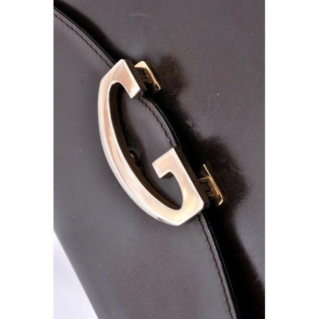 SOLD- Gucci Jackie Glossy Brown Leather Shoulder Bag With G Clasp