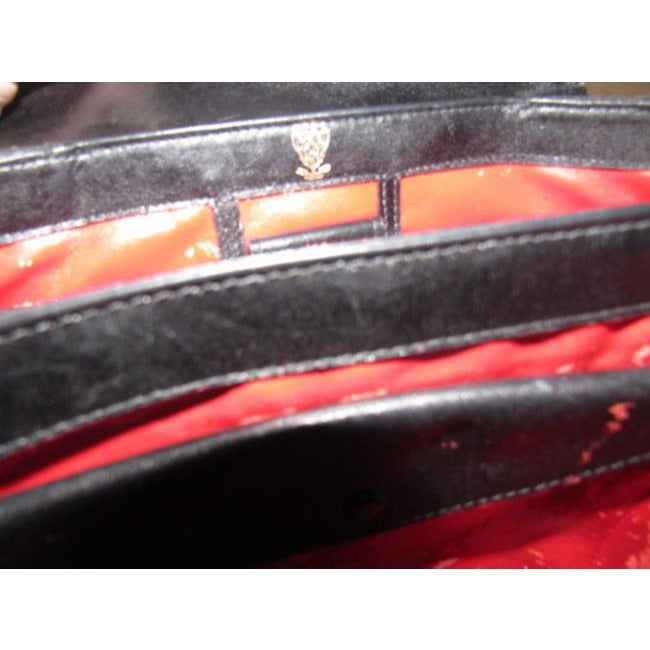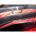 This purse makes a great use of space! On the interior, there are three large compartments, each with multiple pouches and pockets. It is lined in red leather upper that is starting to peel in areas- see pictures- and is extremely clean. The purse predates authentication numbers the way we see them now, but is marked with Gucci's, early gold stamped emblem and an extremely faded embossed number on the interior, front compartment of 406-000-1080.