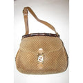 For sale is an early, Gucci, mod, brown small square G logo print embossed suede and leather, bamboo top, shoulder purse with a front pocket and bold gold horse bit and GG accents! It is a unique style with a lot of elements from classic, early Gucci styles that would be great used as a signature, everyday brown purse!
