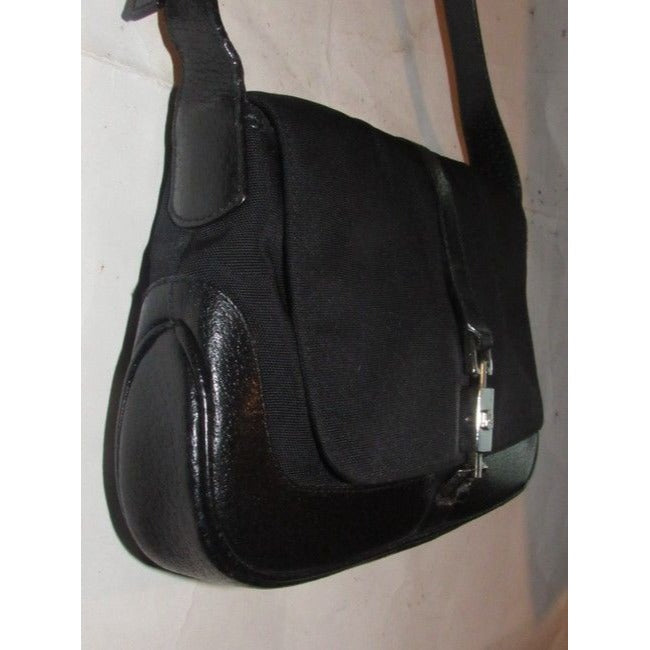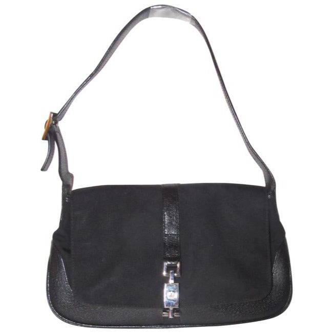 Gucci Jackie Pursesdesigner Purses Black Leather And Black Nylon Fabric Shoulder Bag