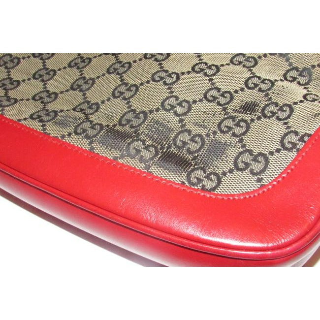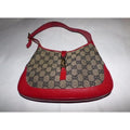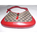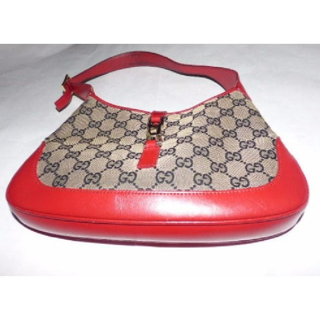 Gucci Jackie Shoulder Guccissima Print Style Top Handle Red And Brown G Logo Leather Hobo Bag