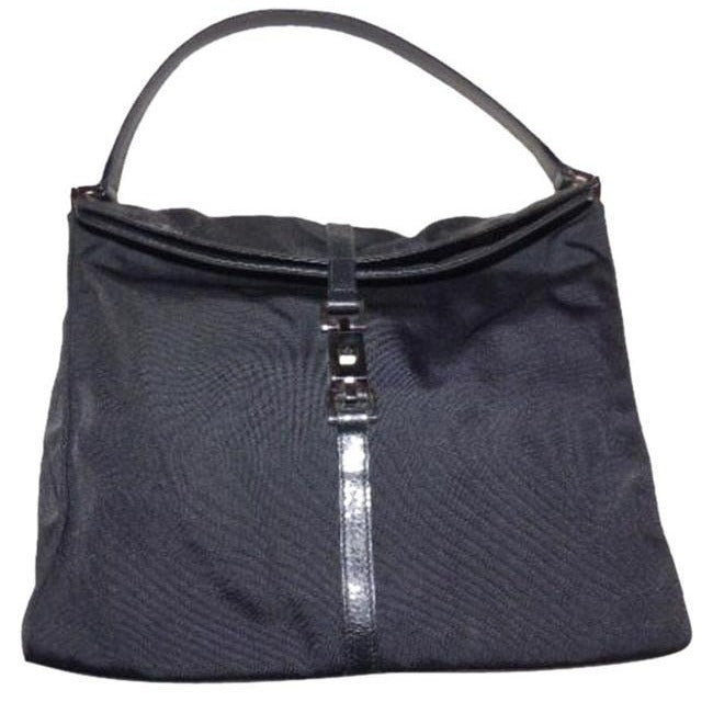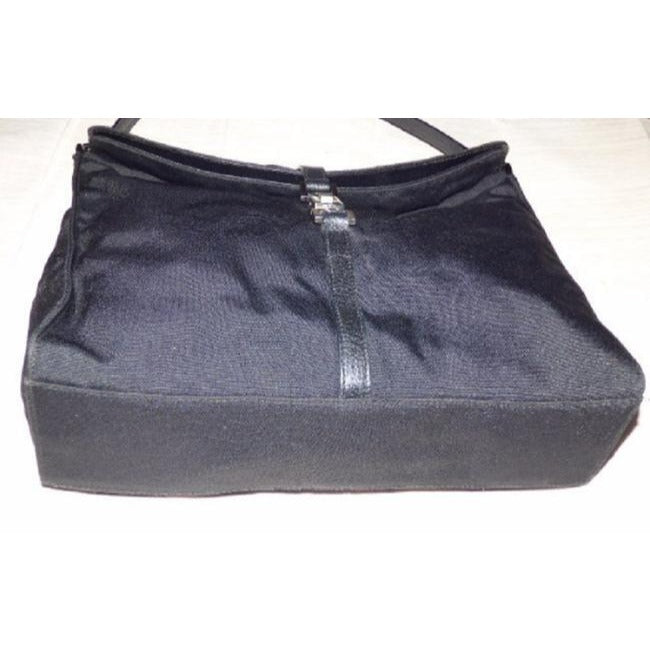 Gucci Jackie Vintage Black Leather Nylon Fabric Shoulder Bag