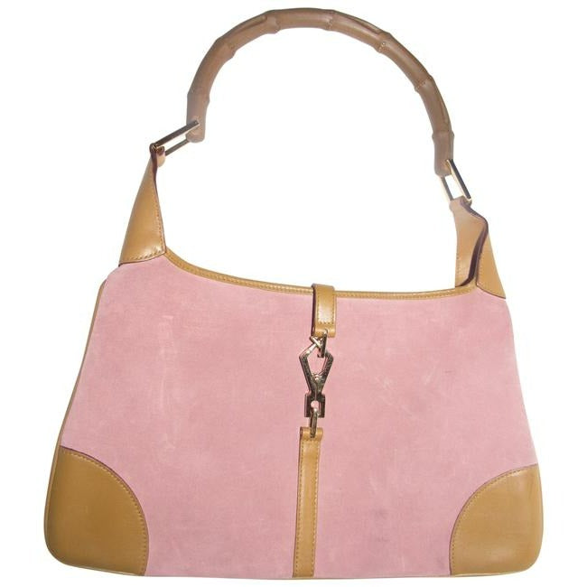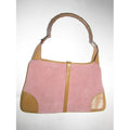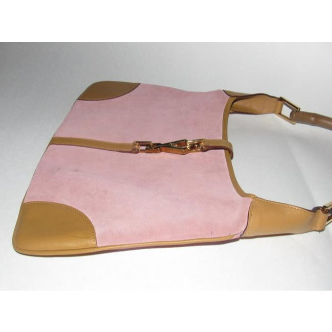 SOLD- Gucci Jackie Vintage Pink Suede And Camel Leather With A Bamboo Handle Hobo Bag