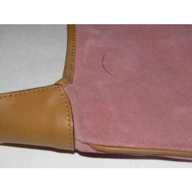 The bag is the perfect Jackie- O version by Gucci that no one else will have! The purse is a larger size and has a bamboo handle! It is made of pink suede and has camel leather accents with gold horse-bit accents as the square, squeeze style lock. It has the true 1960's Gucci mod look!