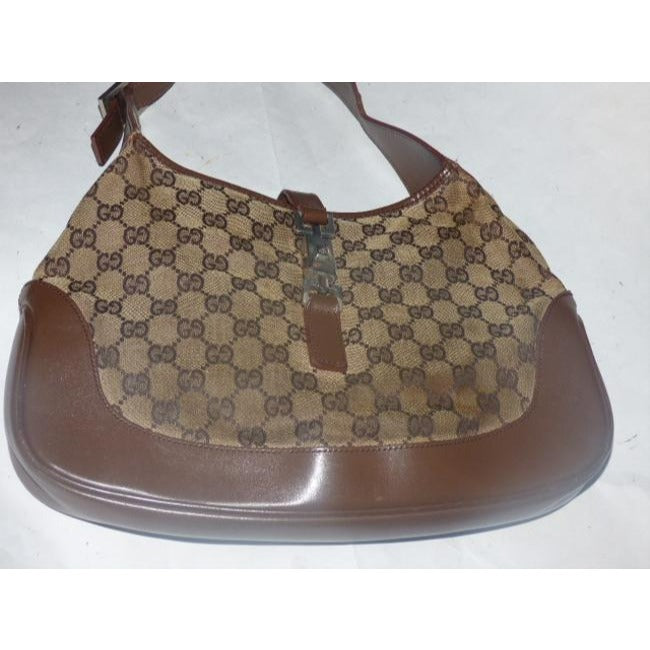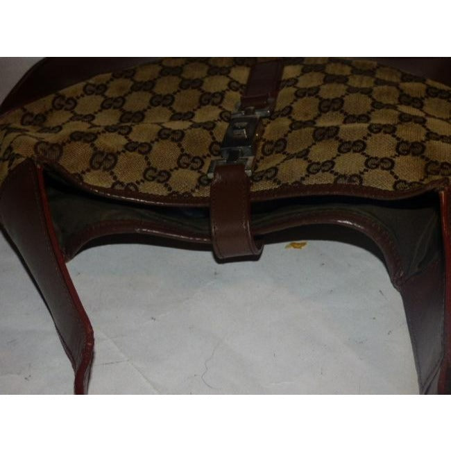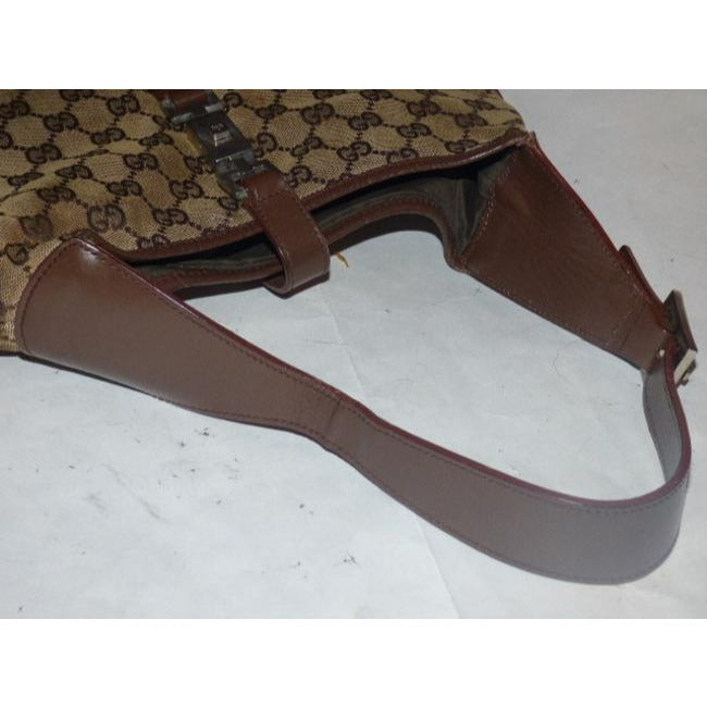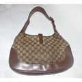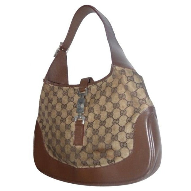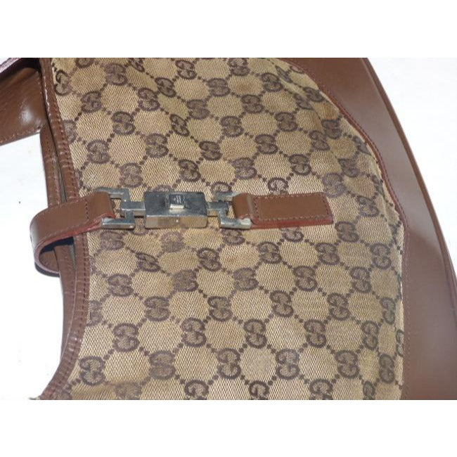 Gucci Jackie Vintage Style Shoulder Purse Brown Large G Logo Print Leather Canvas Hobo Bag