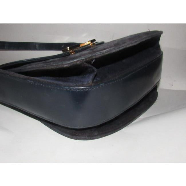 For sale is an early, RARE, Gucci, mod, navy blue glossy leather and greyish blue suede, envelope top, shoulder purse with bold gold tone 'G; accent and accordion bottom! This is a rare, early style, purse from Gucci that will be the only blue purse you will need!