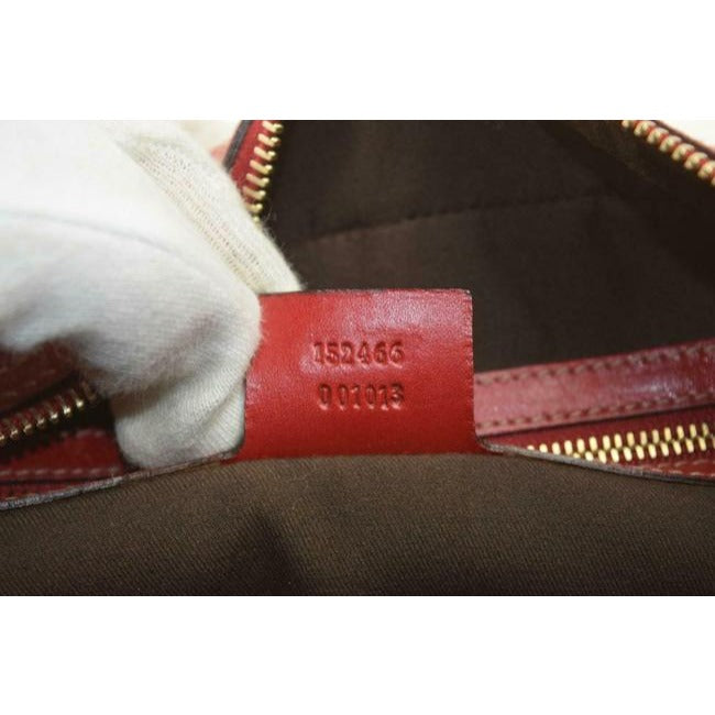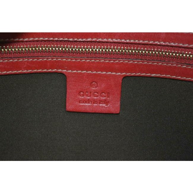 Inside, it is lined with a very clean black fabric, There is one large compartment and an interior zip pocket. Above the zip pocket is a leather embossed tag that reads, 'Gucci, Made in Italy' on one side and has the serial #152466 001013 on the other. This is a rare limited edition style from around 2013 by Gucci in the rare, large all leather style in the always hard to find red color! Don't miss out!