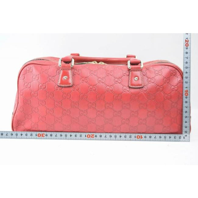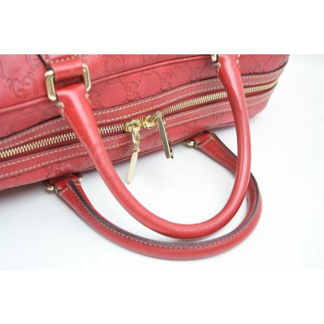 * For sale is a RARE, limited edition, GUCCI, red Guccissima print embossed leather, XL satchel style Joy Boston bag with red enamel and gold heart accents, two handles, a dual top zip closure, and two exterior pockets! This bag is both in a coveted color and style from Gucci.