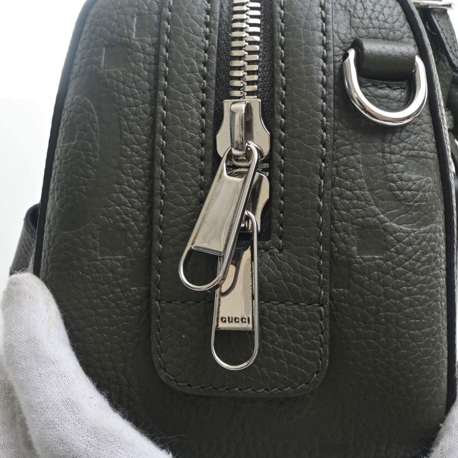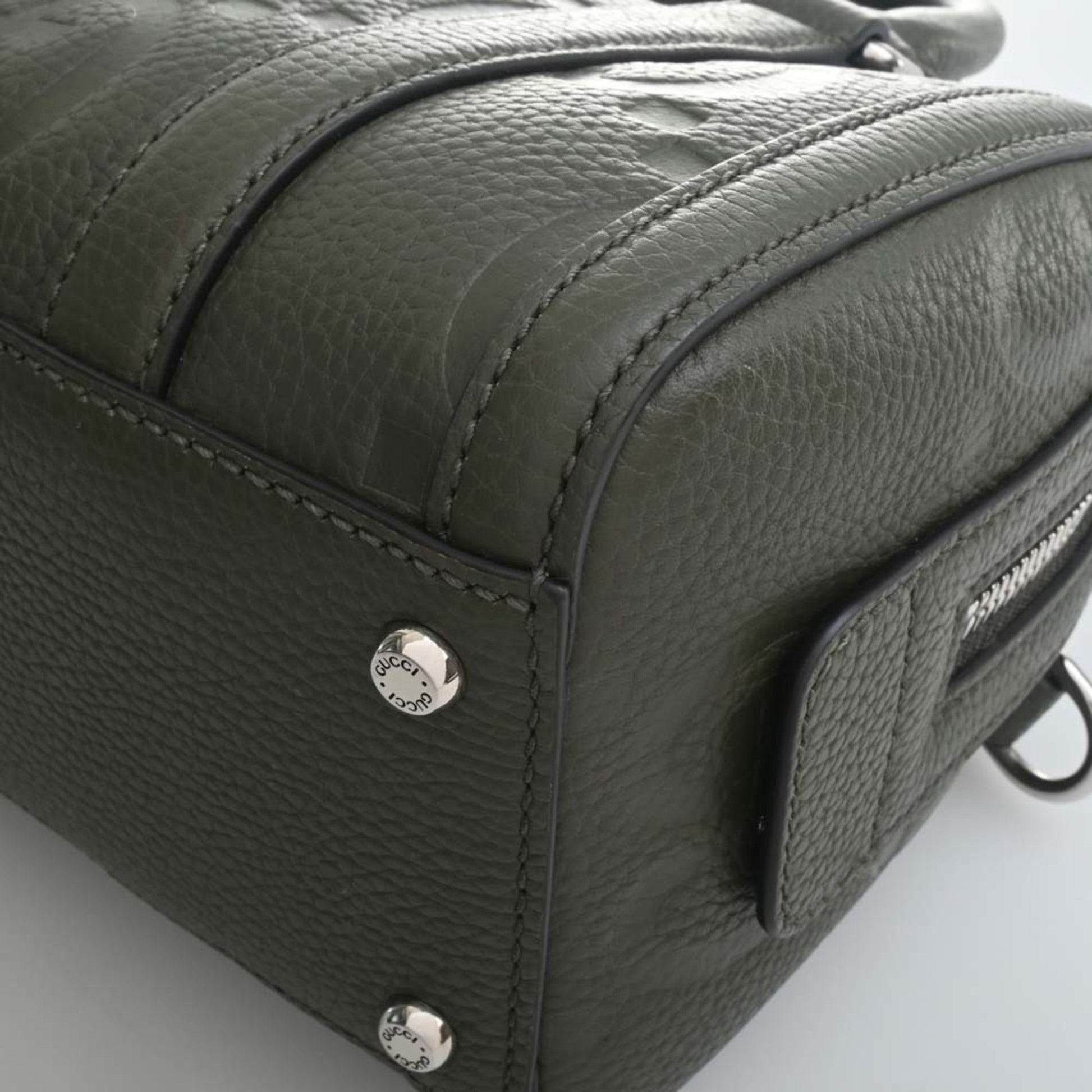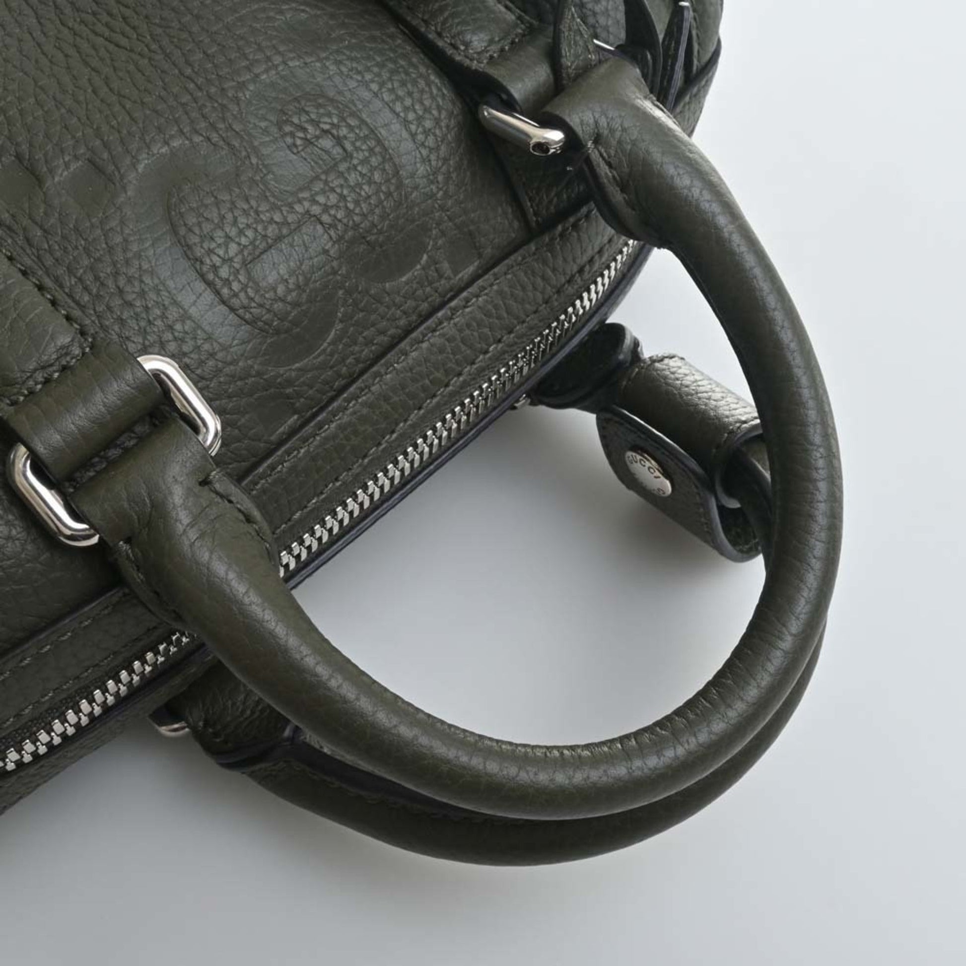 Gucci Jumbo GG Leather Duffel Bag Handbag 725292 Khaki Women's