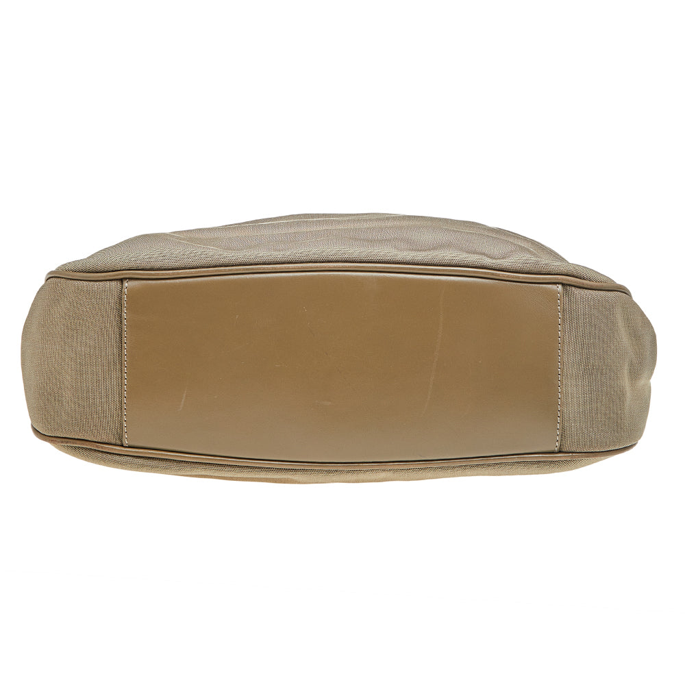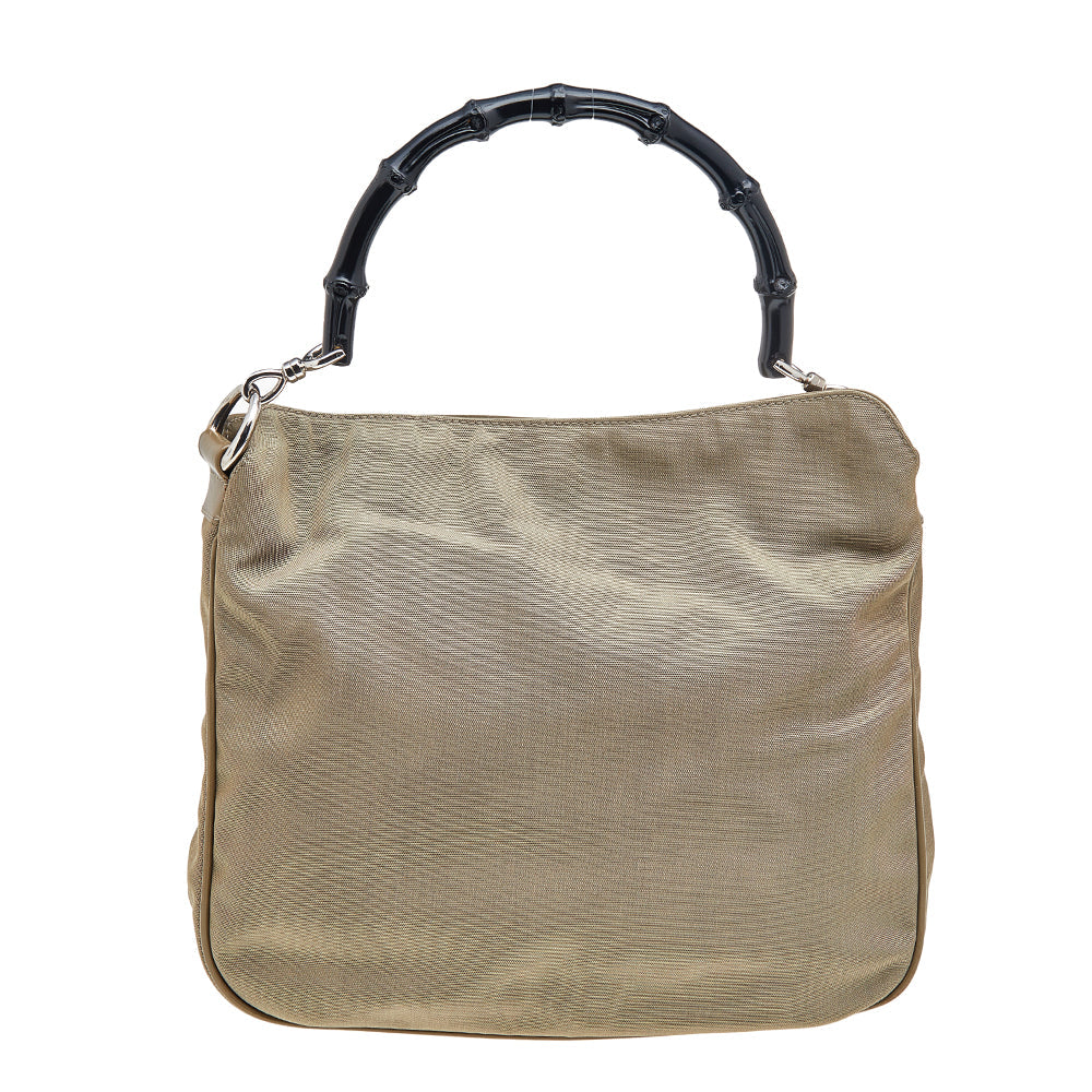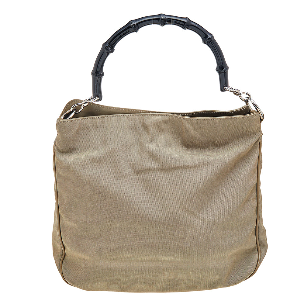 Gucci Khaki Nylon and Leather Bamboo Handle Hobo
