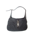 Gucci, large size, black Guccissima print & black leather, 1961 Jackie hobo style, shoulder bag with a gold piston closure