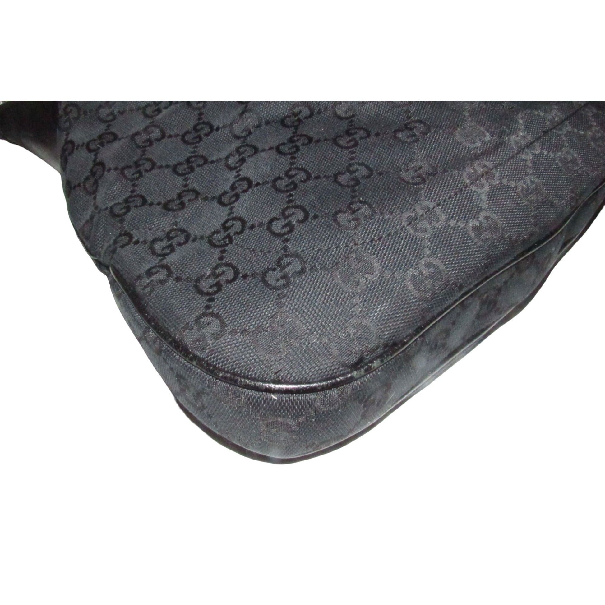 * For sale is a Gucci, large size, black Guccissima print and black leather, Jackie- O style, hobo shoulder bag with a chrome push button closure! This purse is a the classic mod style from Gucci in the largest size this style was available. It would be great used as your signature black purse!