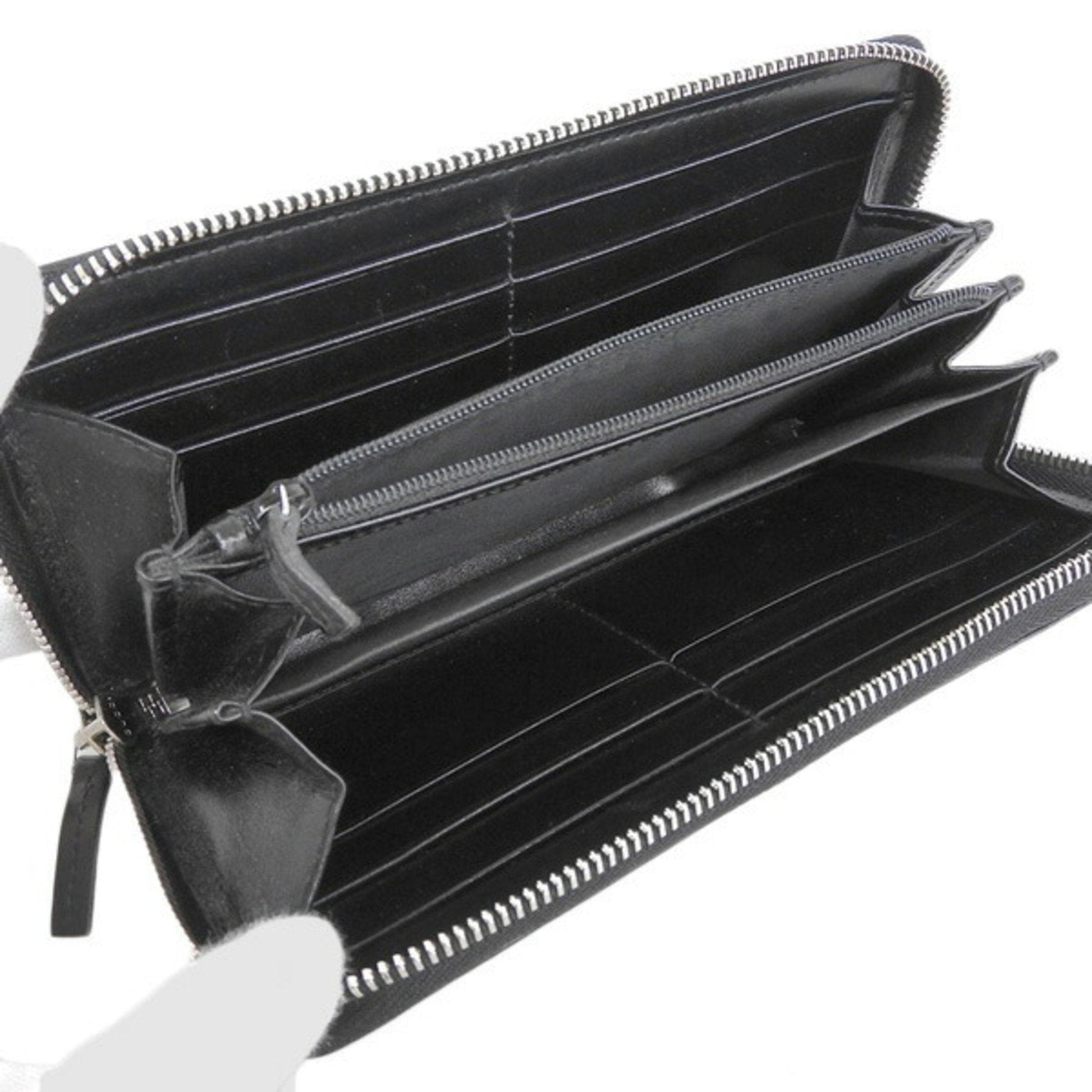Gucci Leather Diamante Round Long Wallet 307990 Black Ladies