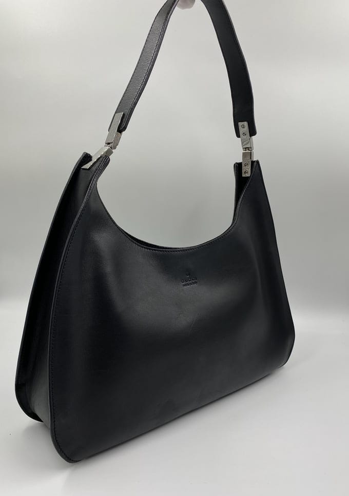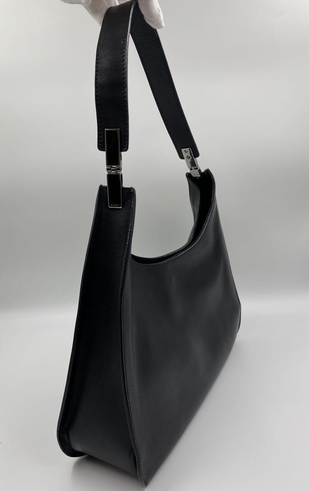 A timeless 90's vintage Gucci shoulder bag with minimal Gucci branded silver hardware.