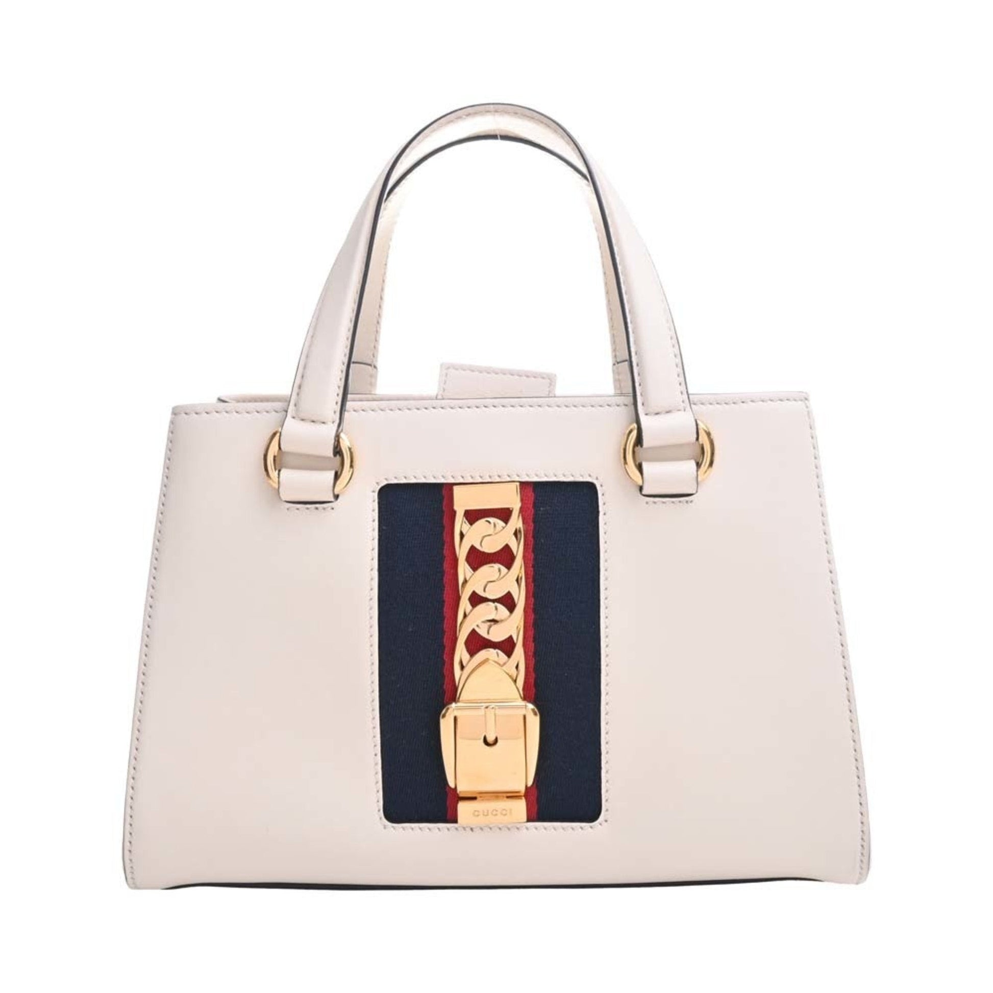 Gucci Leather Sylvie Handbag 460381 White Ladies