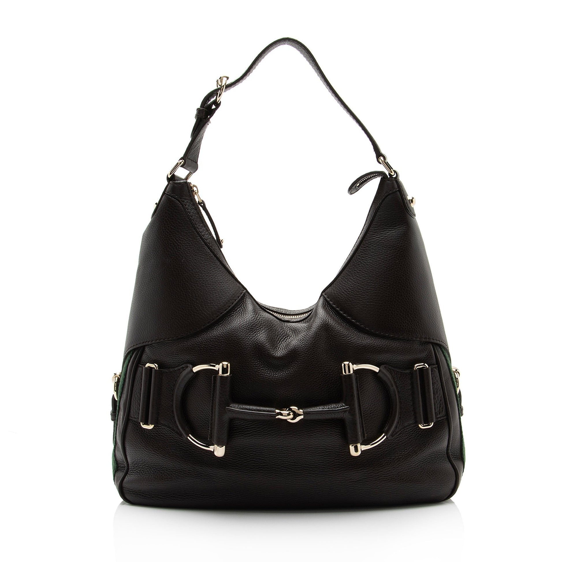 Gucci Leather Web Heritage Horsebit Large Hobo (SHF-mg2vZO)