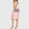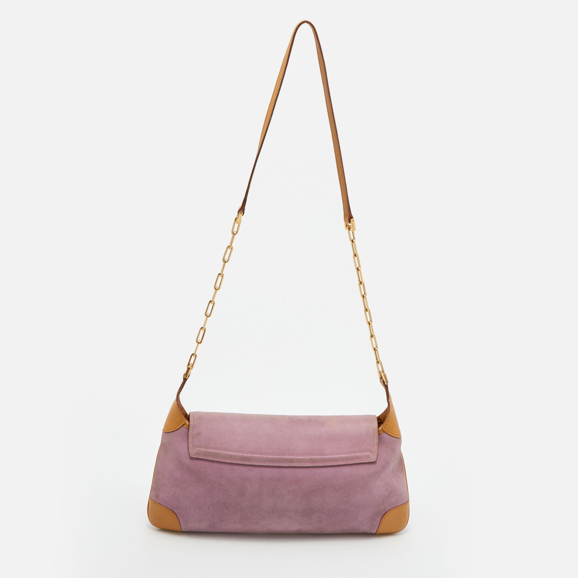 Gucci Light Pink/Brown Suede and Leather Tiger Charm Flap Shoulder Bag