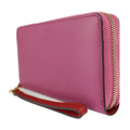 Gucci long wallet 410109 leather pink red gold hardware with strap round fastener wristlet