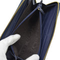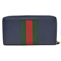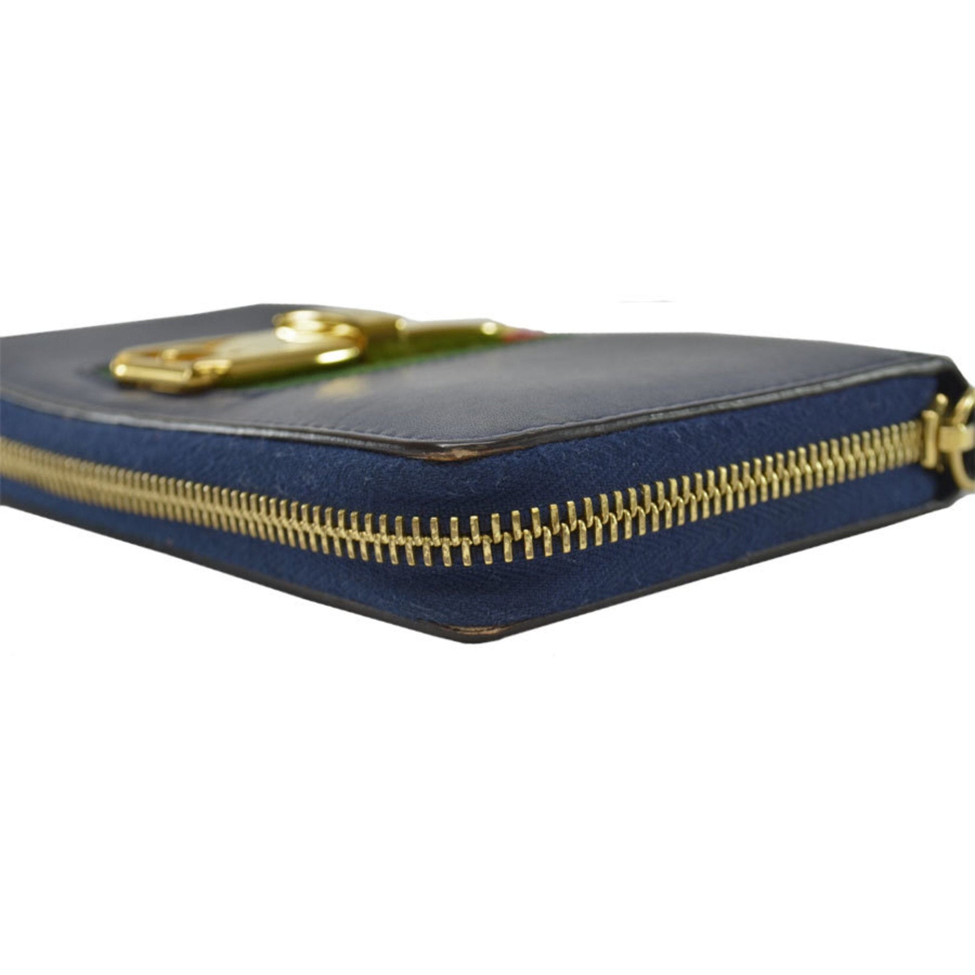 Gucci Long Wallet Silvi Navy x Gold Green Red Leather Metal Material Canvas Round Zipper Women's 476083