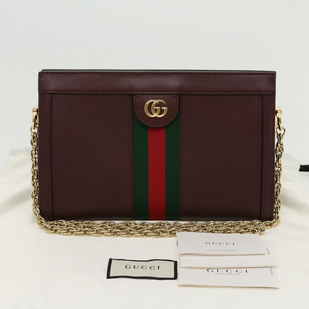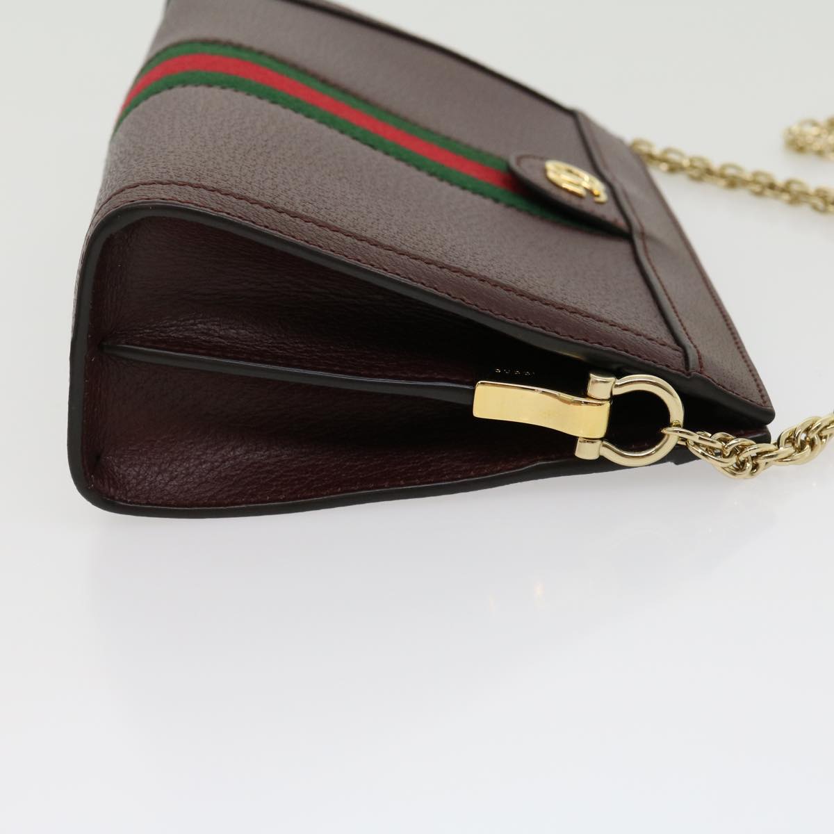 GUCCI Marmont WebSherry Line Shoulder Bag Leather Red 503877493075 lt580