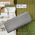Gucci Aria explores the House's archives, telling Gucci's story though a mix of archival and contemporary elements. The GG Marmont was introduced in one of the Creative Director's first fashion shows and each season its design evolves through the lens of the latest collection. Here, the tote bag is presented in dark grey matelass� leather with antique silver-toned hardware.