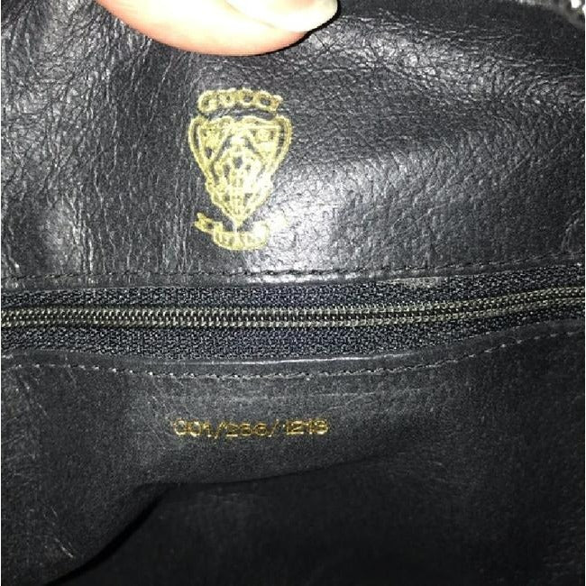 The interior has one zip close pocket with a gold Gucci zipper fob. It is lined with black suede and it is a very clean-- see pictures. The purse is an early style by Gucci and has an early serial # embossed in gold of 001 256 1213 and 'Gucci' and 'Italy' around the Gucci crest above it- see pictures. The purse has been authenticated by a third party expert, so, so buy with confidence! Don't miss out on this special vintage purse!