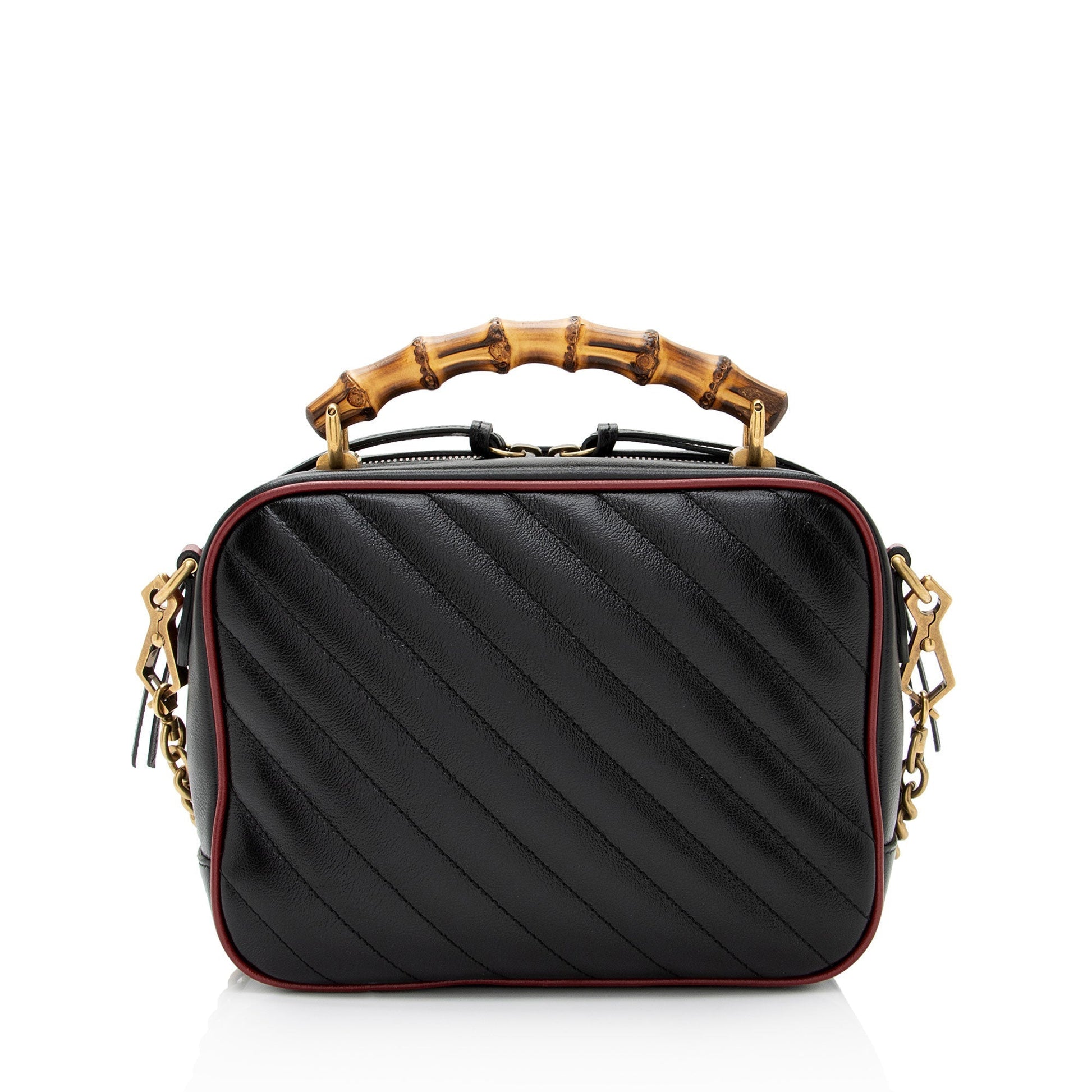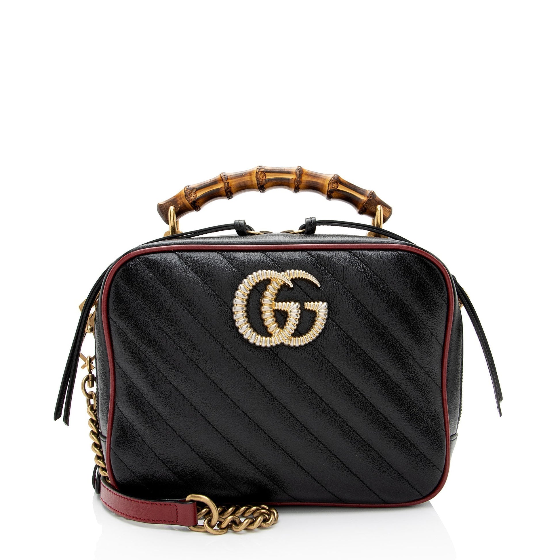 Gucci Matelasse Leather Torchon GG Marmont Bamboo Top Handle Bag (SHF-8zPXp4)