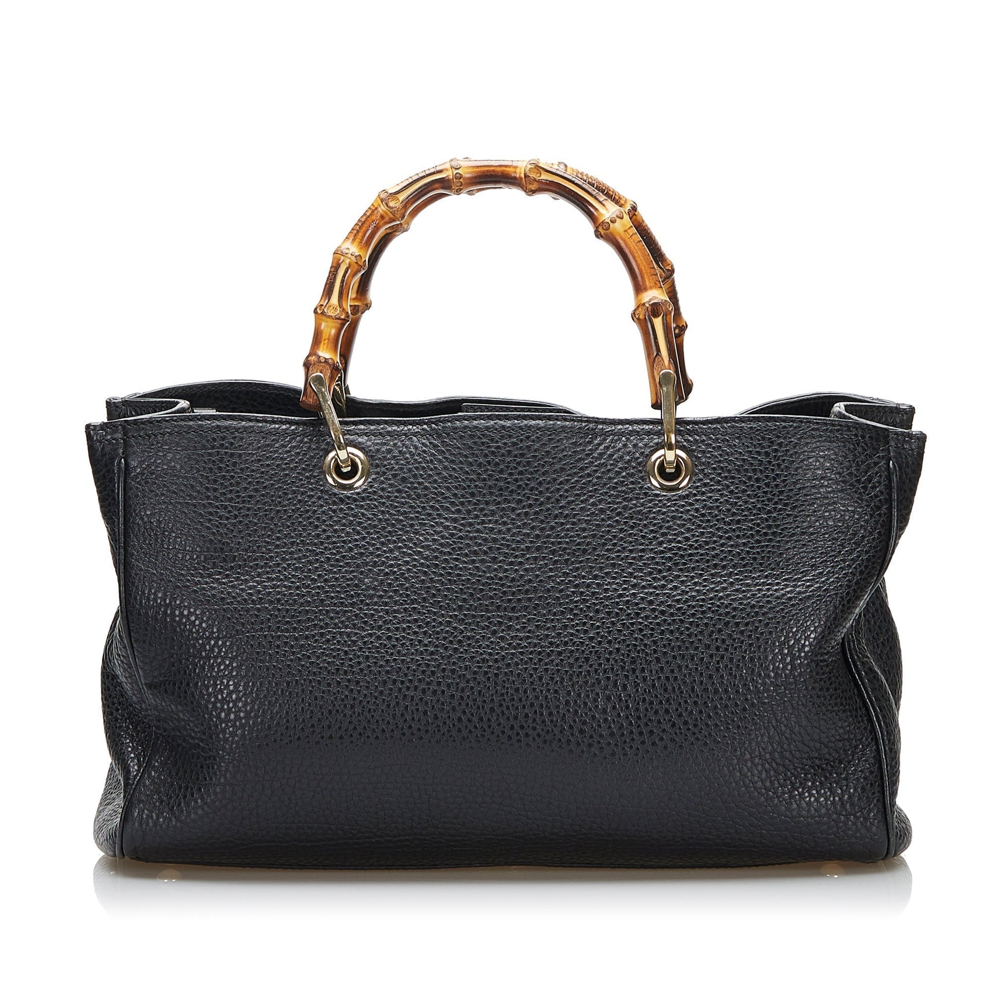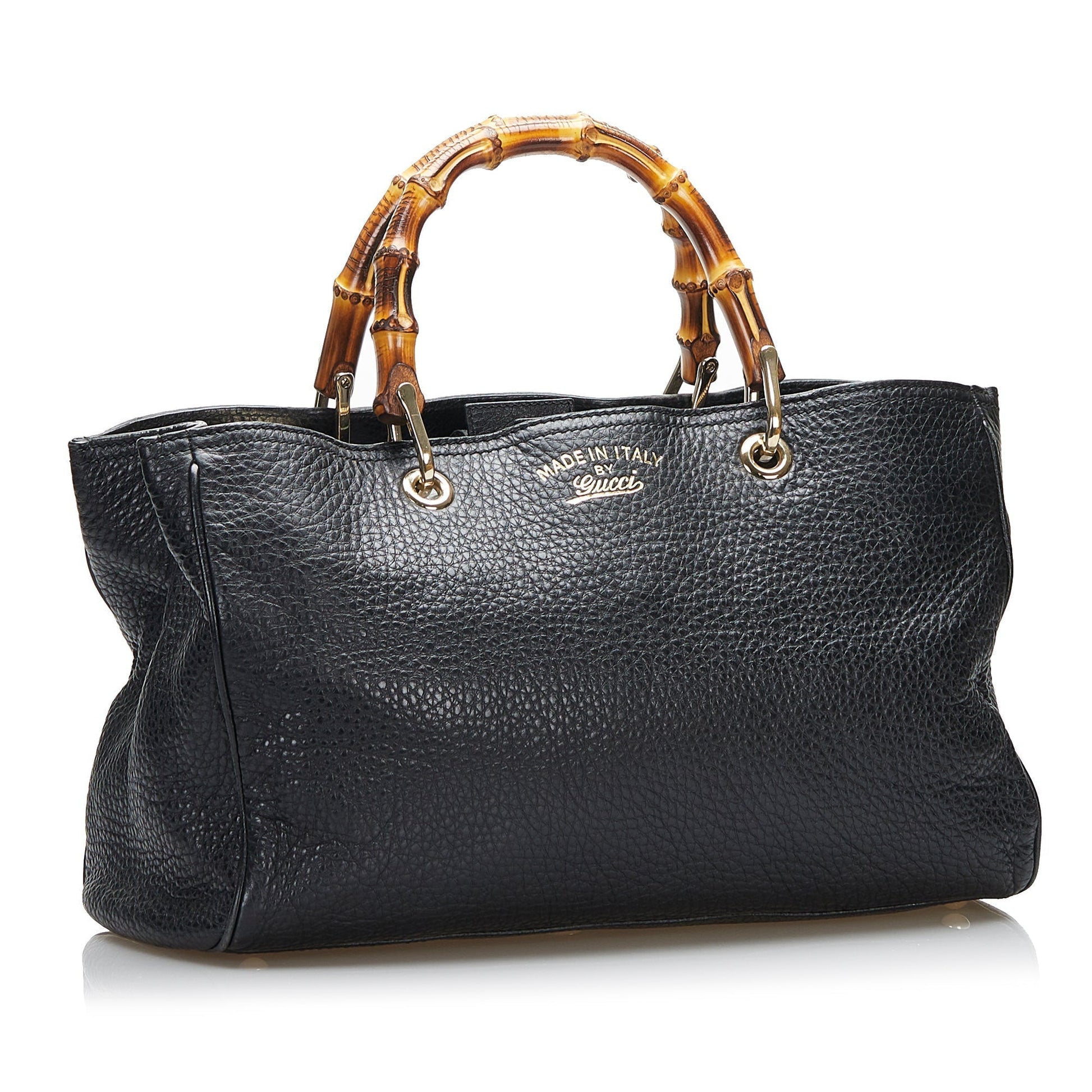 The Bamboo Shopper features a leather body, bamboo handles, a magnetic top closure and interior zip and slip pockets.