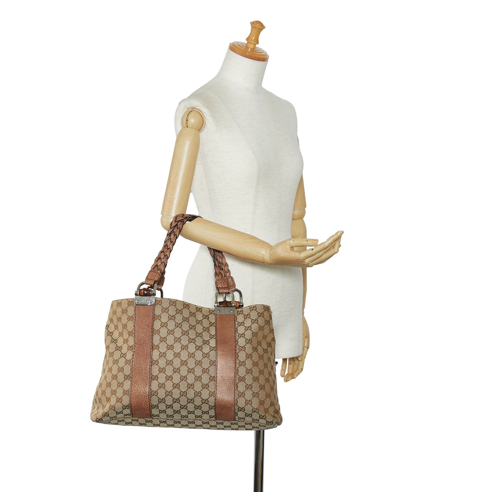 GUCCI Medium GG Canvas Bamboo Bar Tote Tote Bag
