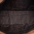 This tote bag features a canvas body with leather trim, flat braided straps, an open top, an interior zip compartment, and interior zip and slip pockets.