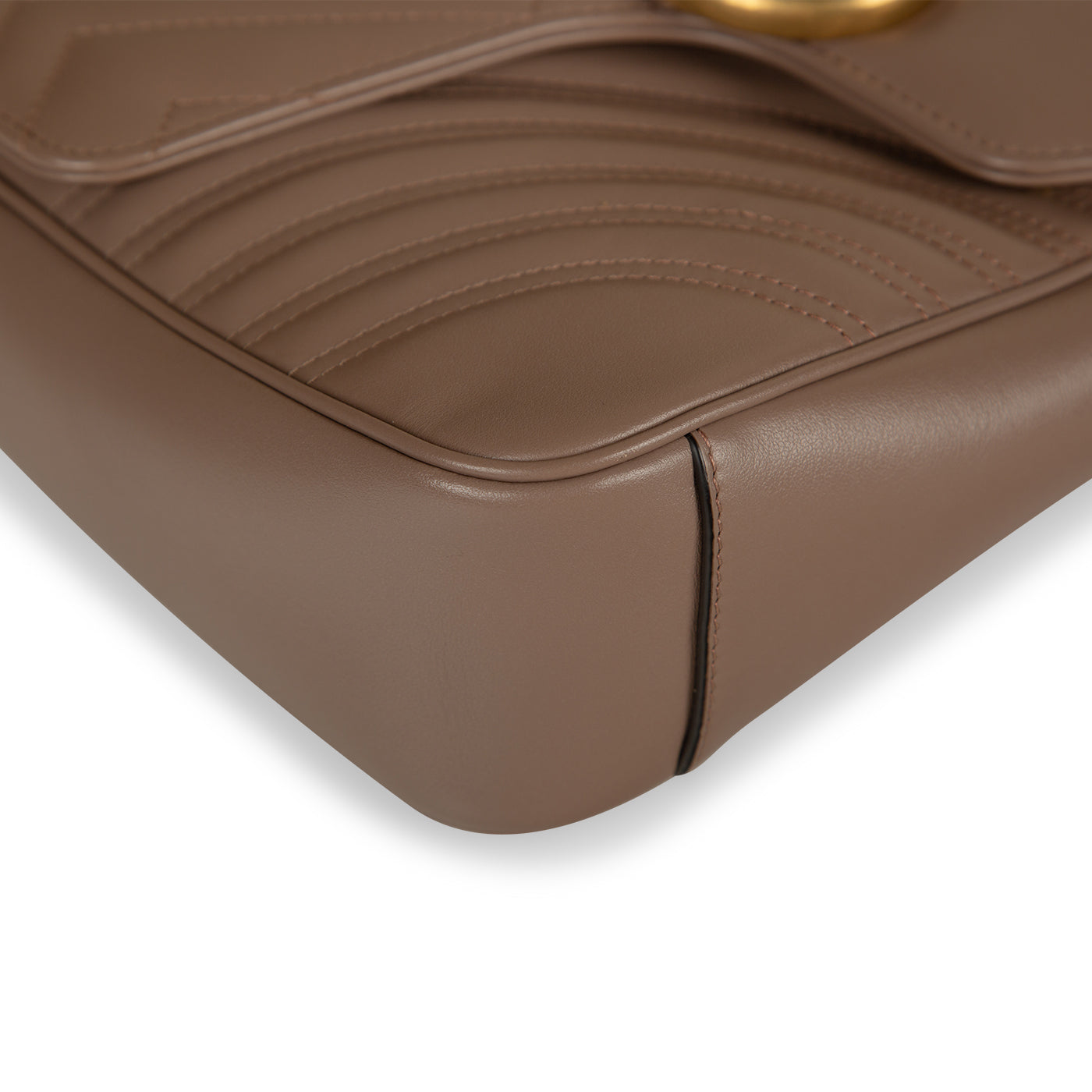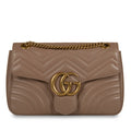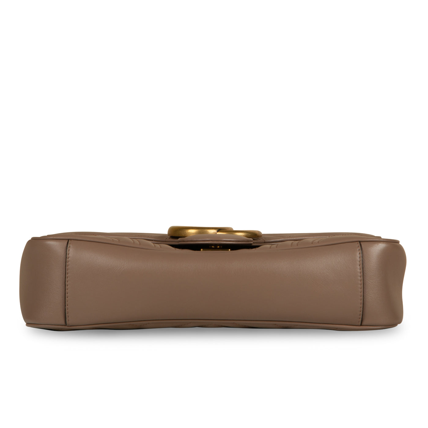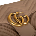 The softly structured and beautifully crafted medium marmont bag by Gucci is a firm favourite at Bagistry Closet for both its iconic, striking details and its everyday usability factor! The buttery soft matelassé leather has been quilted expertly in Gucci's signature chevron detailing and is finished in a perfectly neutral nude tone, making it the perfect addition to you AW18 wardrobe.