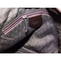 The bag is a zip top, shoulder style purse made of nylon with a single leather strap. It has an exterior pocket with a leather flap top and a large squared G chrome logo clasp. This purse is designed in such a classic style! The purse majority of the purse is brown nylon with brown leather accents at the front pocket and strap