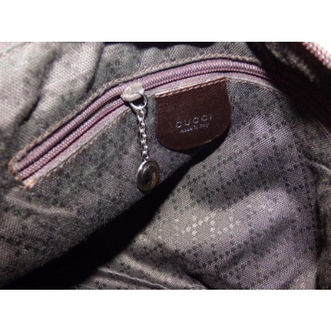 * For sale is a vintage,Gucci, unique, brown nylon and leather, hobo style, top zip, shoulder bag with front pocket with large squared G chrome logo clasp! It is a unique take on a classic hobo style that would be great used as an everyday purse!