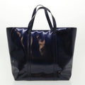 Gucci, metallic blue leather, XL tote bag/shoulder purse with a top zip closure, graduated shape, & chrome accents