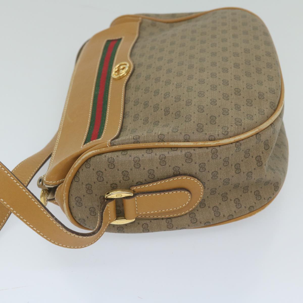 GUCCI Micro GG Canvas Web Sherry Line Shoulder Bag PVC Beige Green Auth yk9514