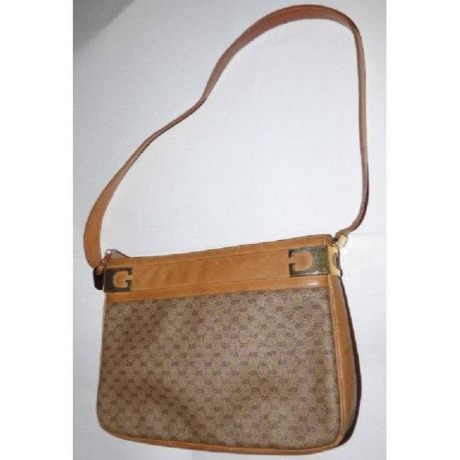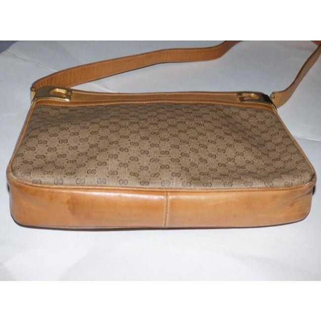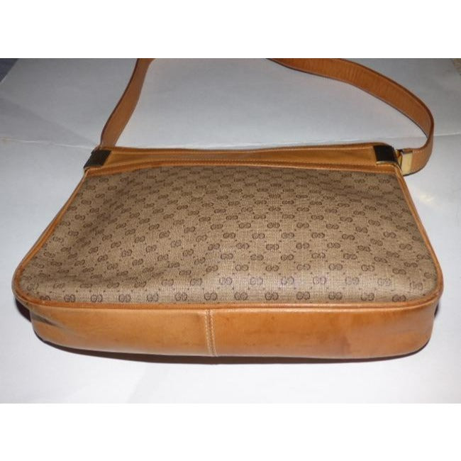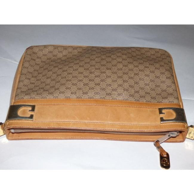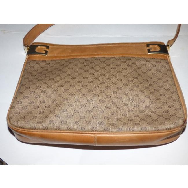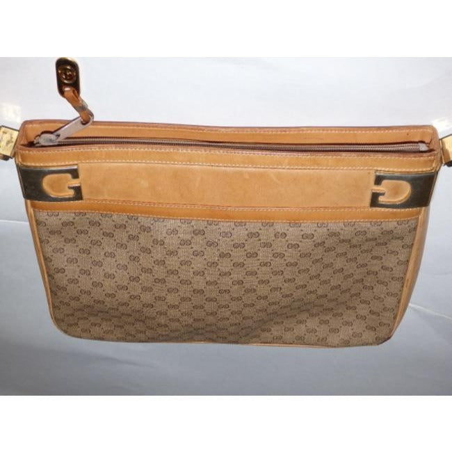 For sale is a vintage, RARE, Gucci, micro Guccissima print coated canvas and camel leather shoulder bag with a top zip closure, gold 'G's framing the top, and iconic Gucci style! It is a classic style in a popular color and print that would be great used as your signature brown purse!