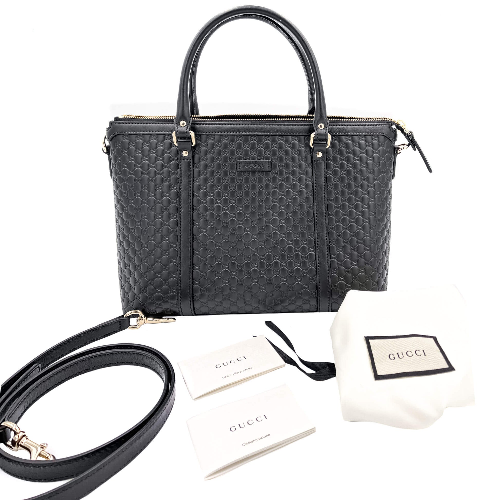 Microguccissima Tote Leather Black 2-Way