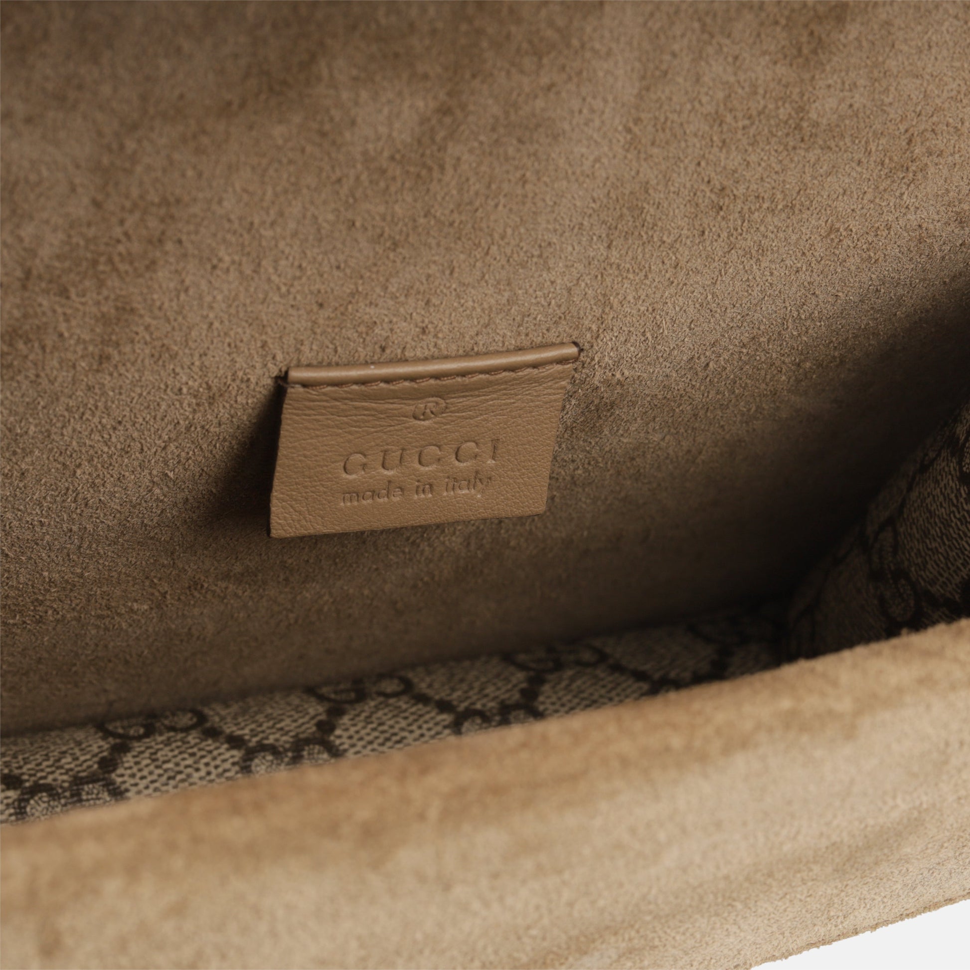 - Gucci embossed leather logo tag