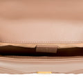 Carefully crafted from smooth, matelassé leather featuring Gucci's signature GG logo, the Marmont has been the bag on every It-Girl's "must-have" list. Featuring a square silhouette, tiny top handle, and long chain / leather strap, the Marmont is the ultimate "cool" bag. Perfect for a young, edgy woman with a fashion forward sense of style. Carry all your small every day essentials inside the interior compartment while remaining sleek and stylish. The ideal accessory to compliment pretty much anything in your wardrobe, the Marmont is a sure statement to all eyes will be on you no matter where you go. A classic style from Gucci, the GG Marmont is a well-worthy addition to any luxury handbag collection that you definitely need in your life.