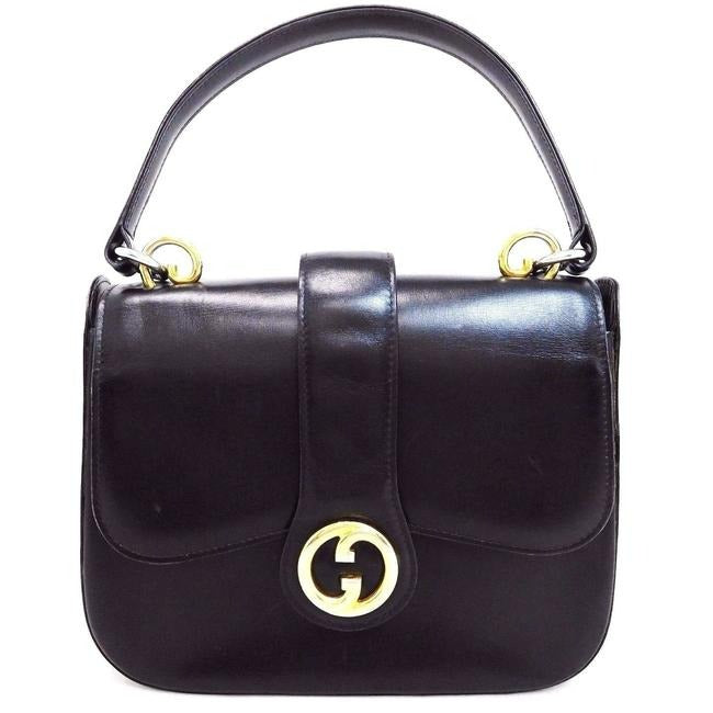 * For sale is a unique, vintage, RARE, Gucci, mod, black leather, two-way top handle style purse with gold tone accents and lots of pockets! It is a unique style that would be a great used as a signature black purse! Gucci has re-released this style from 1973 and the MSRP is $2.5K or more! No one needs to know you have the original for a fraction of the price!