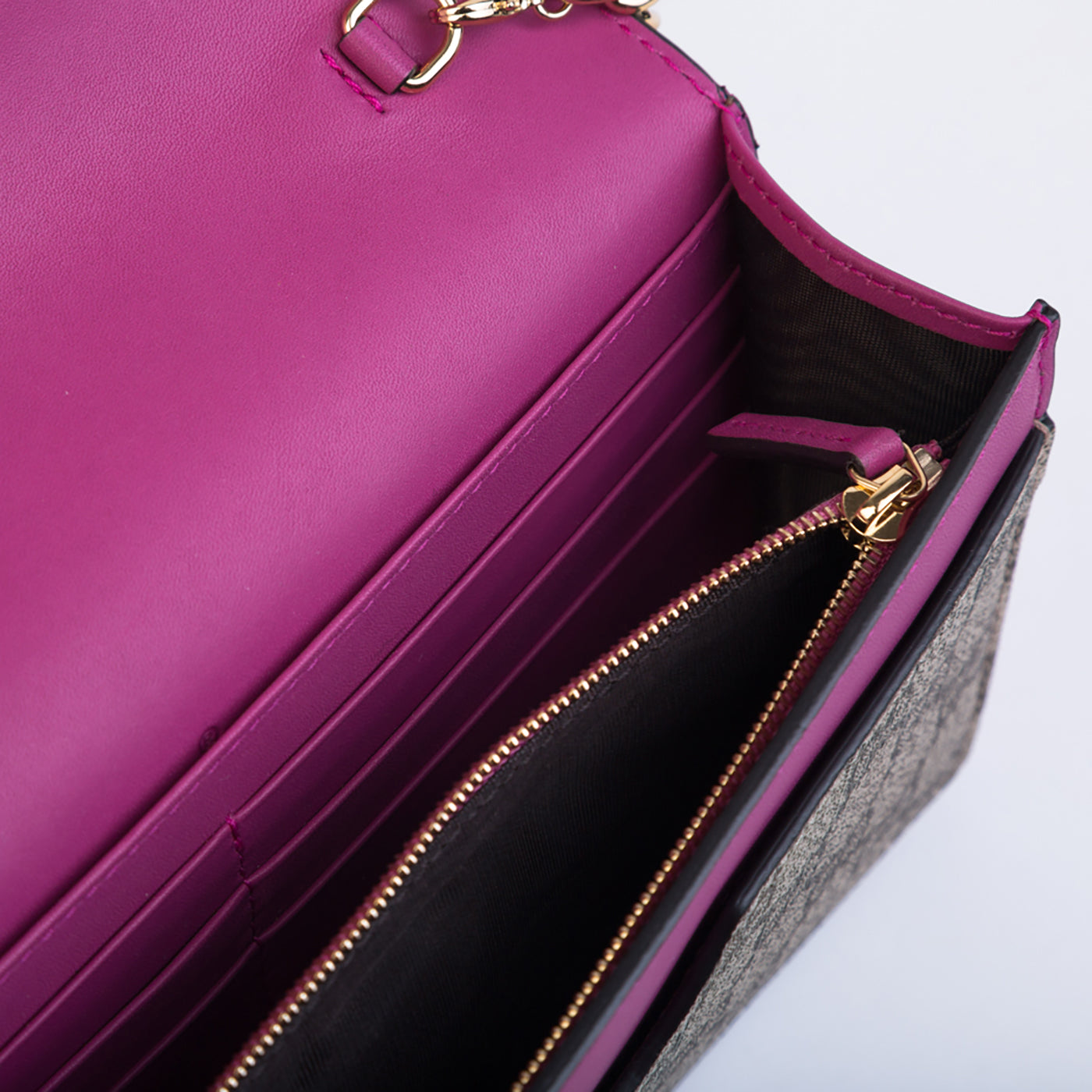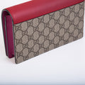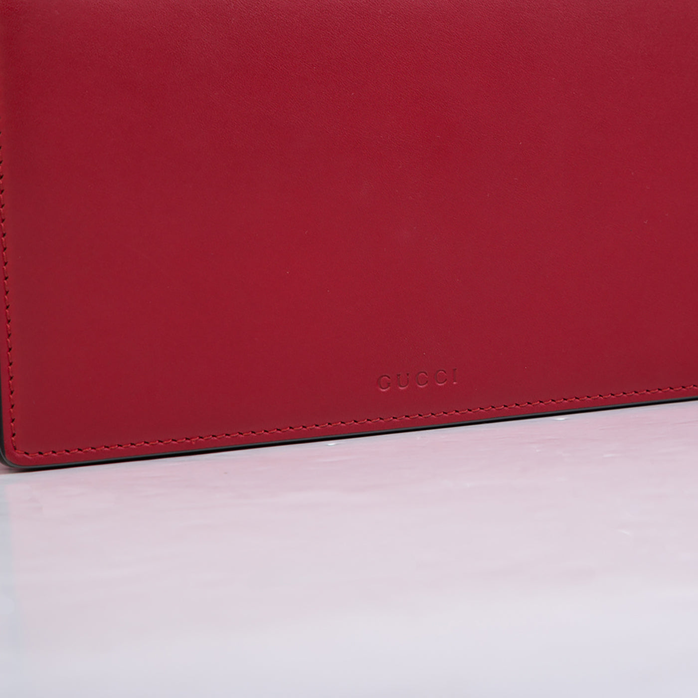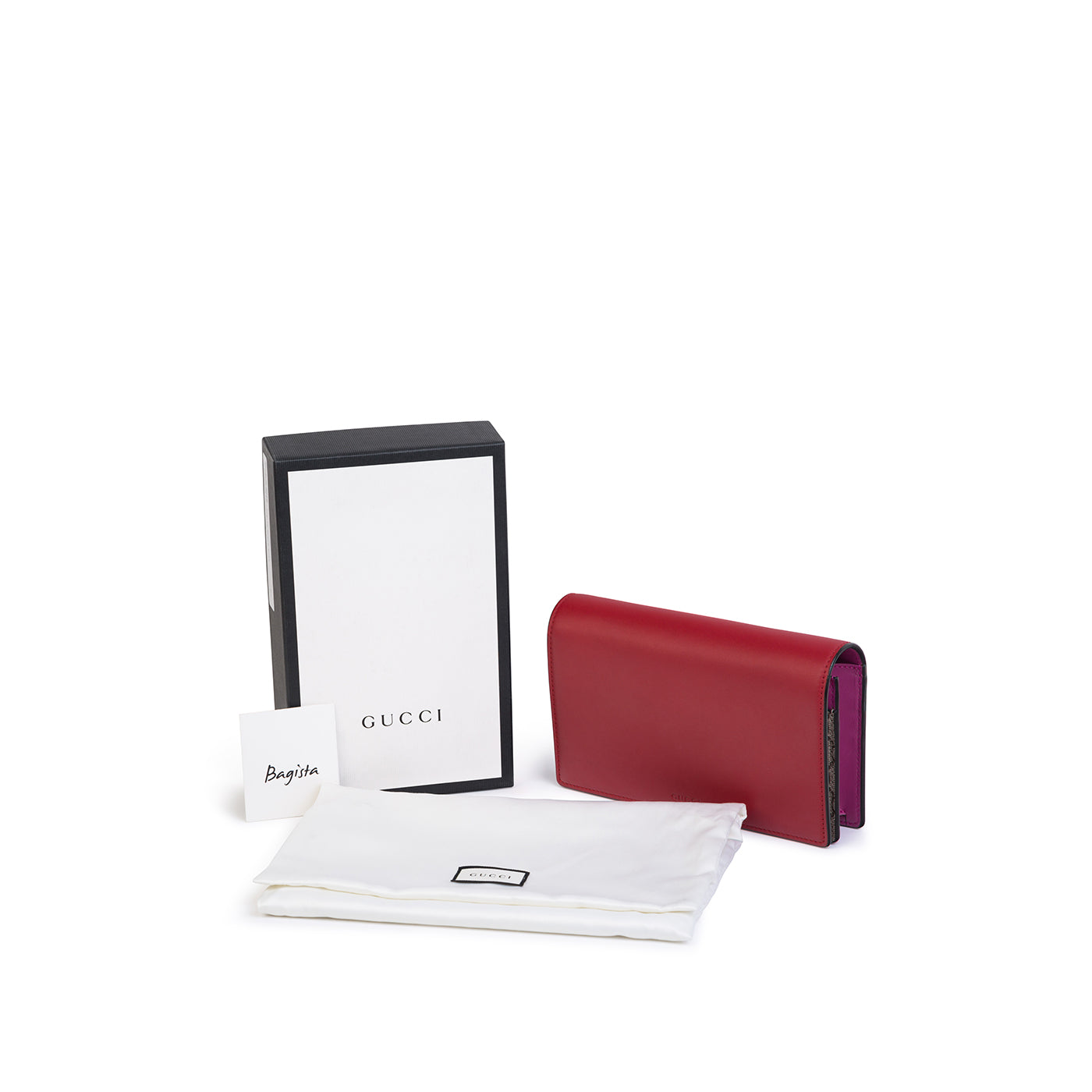 Effortlessly chic, Gucci presents their stunning bi-colour clutch embossed with their signature GG monogram print. The red, pink, and beige hues are a match made in heaven and would compliment any neutral-toned outfit. Wear this piece with any evening attire and you'll be sure to make heads turn. This clutch truly embodies the definition of an "understated statement" with its subtle front logo, but monogrammed rear. Ideal for any woman with a love for luxury and a special spot for Gucci, this gorgeous piece is a must have.?ÿ