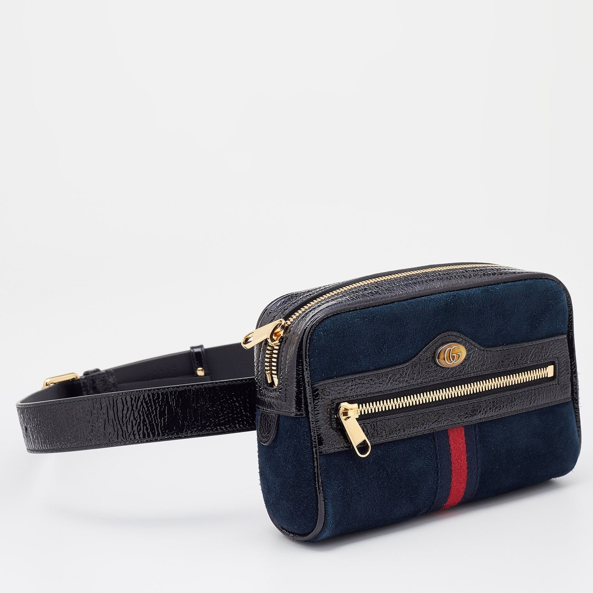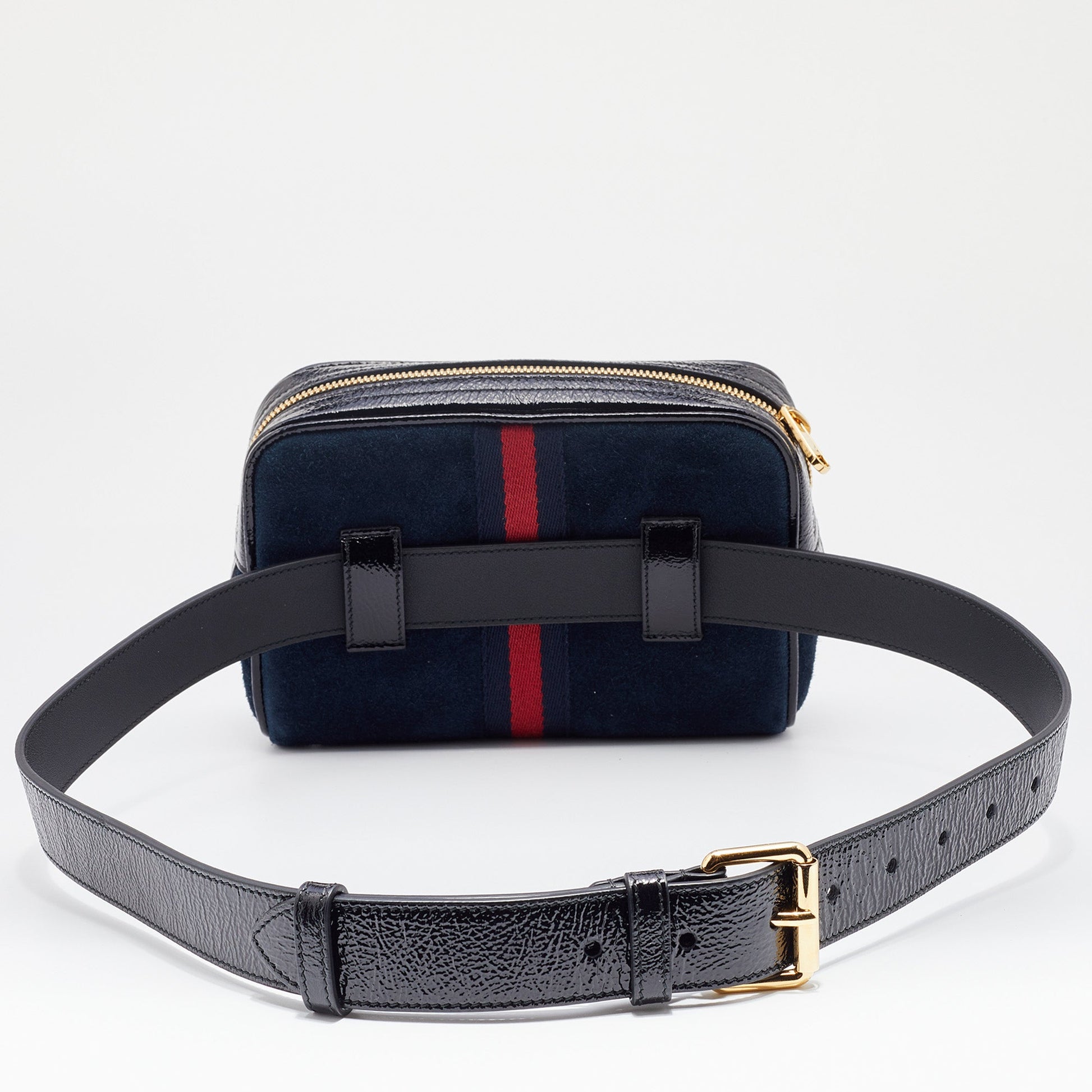 Gucci Navy Blue/Black Suede and Patent Leather GG Ophidia Belt Bag