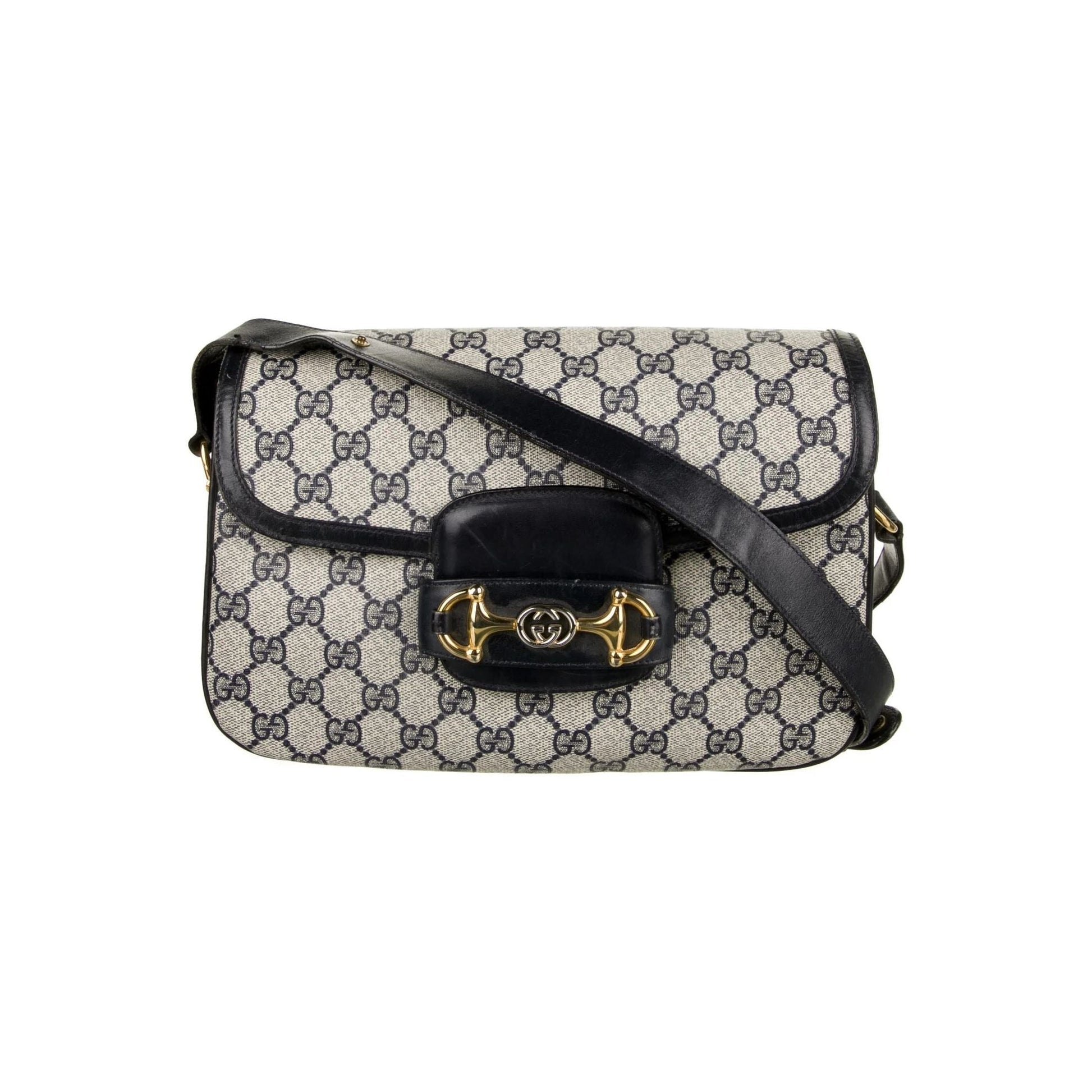 Gucci navy Guccissima leather 1955 Horse-bit shoulder bag
