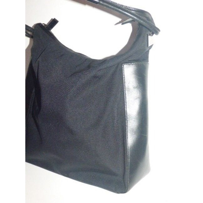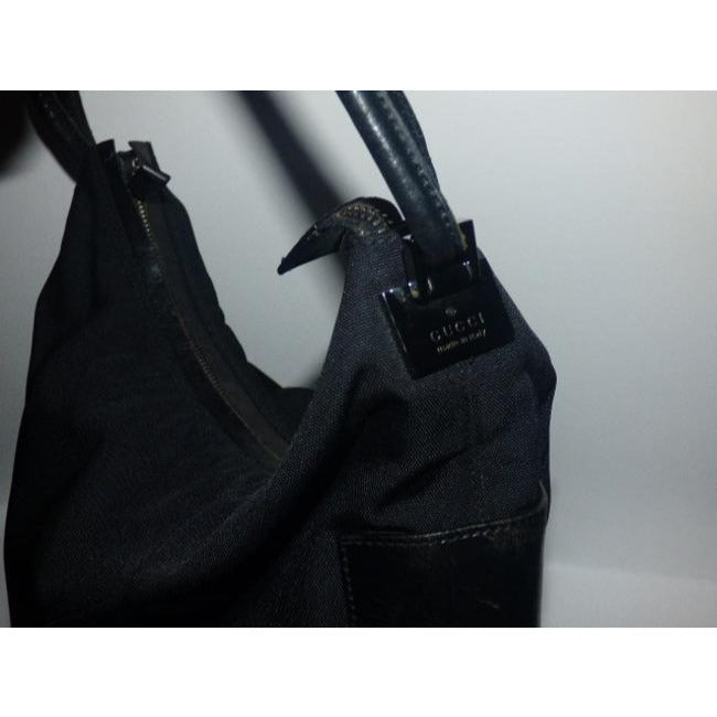 Gucci New Black Leather Nylon Fabric Shoulder Bag