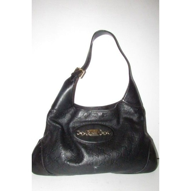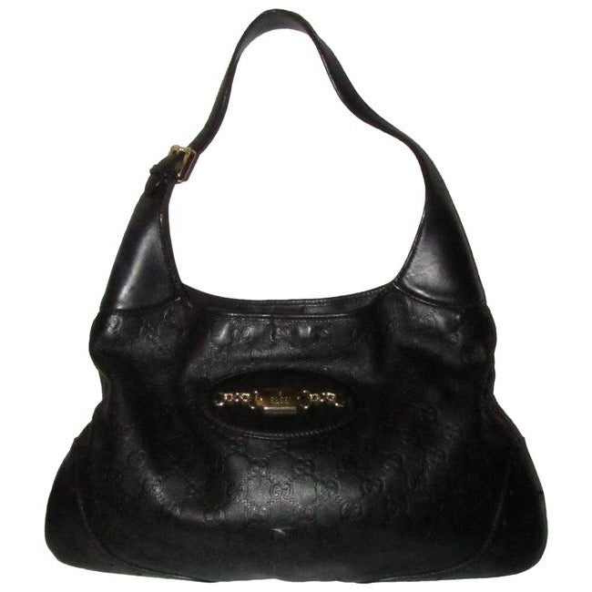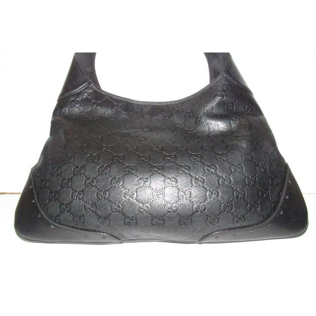 Gucci New Jackie Guccissima Print Shoulder Purse Black Gg Leather Hobo Bag