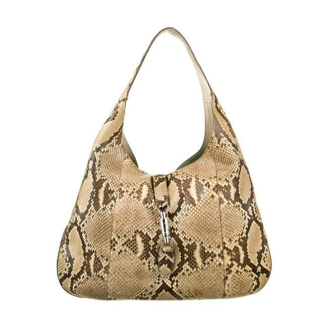 SOLD- Gucci New Jackie Xl Leather With Piston Lock Shades Of Brown Python Hobo Bag