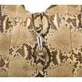 The bag is an XL New Jackie hobo style shoulder purse. The purse is made of python leather in shades of brown with chrome hardware, including a great, engraved piston clasp! The triangular bottom of the purse allows it to hold a lot more than you might think!