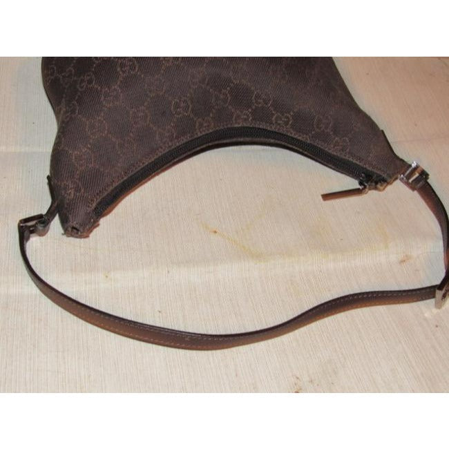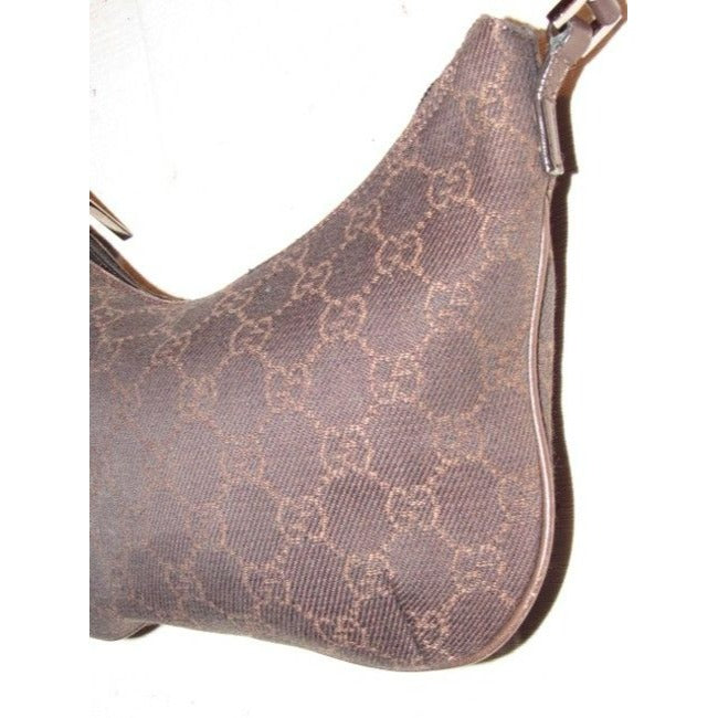 For sale is a Gucci, petite, brown Guccissima print canvas & brown leather, hobo style, kidney shaped purse with chrome hardware & zip top closure! It is a the classic mod style from Gucci that would be great used as your 'night out' or everyday purse if you travel light!