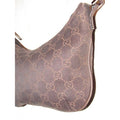 Gucci, petite, brown Guccissima print canvas & brown leather, hobo style, kidney shaped purse with chrome hardware & zip top closure