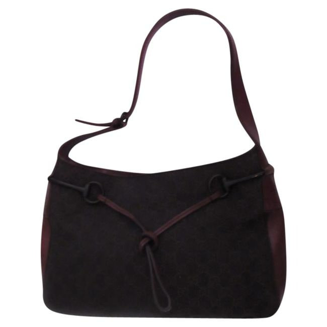 Gucci Newer Brown Large G Logo Print Canvas And Brown Leather Satchel